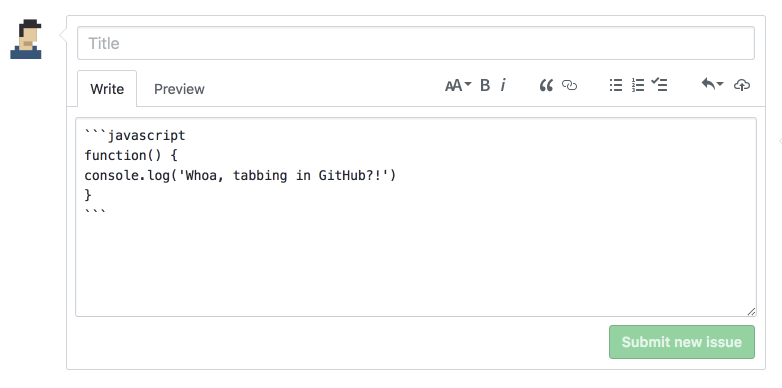 Adds indent with tab to textareas. Writing code blocks in GitHub comments just became a cinch.