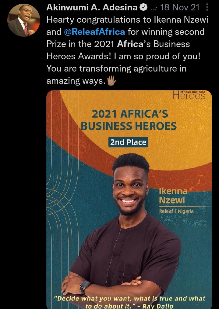 They have been recognized in Nigeria for starting an agricultural evolution in the country and the west and central African region as a whole. This is not a huff, puff and smoke statement at all. In 2017 Releaf won 120 thousand USD in initial funding as one of the only African and successful companies in the Y-COMBINATOR startup accelerator program. In 2021 the company and CEO Ikenna Nzewi came in second place for the “African business heroes” award. They beat more than 50 other famed and great African businesses and startups from across the continent to achieve this award. Businesses and startups ranging all the way from agritech, fintech, educational technology and even medical technology. This was because of their non-stop efforts to ease business for small scale share holder farmers across their nation and region. Their efforts were even recognised by Dr. Akinwumi A.Adesina . Dr. Adesina is the former Nigerian minister for agriculture and rural land development. He is also the current head of the African Development Bank. He praised Releaf and the CEO Ikenna Nzewi for their work in agricultural business transformation. The investment poured on them by Y-COMBINATOR and the encouragement through Dr. Adesina’s and the awards earned by them could be a very strong indicators of their future growth.