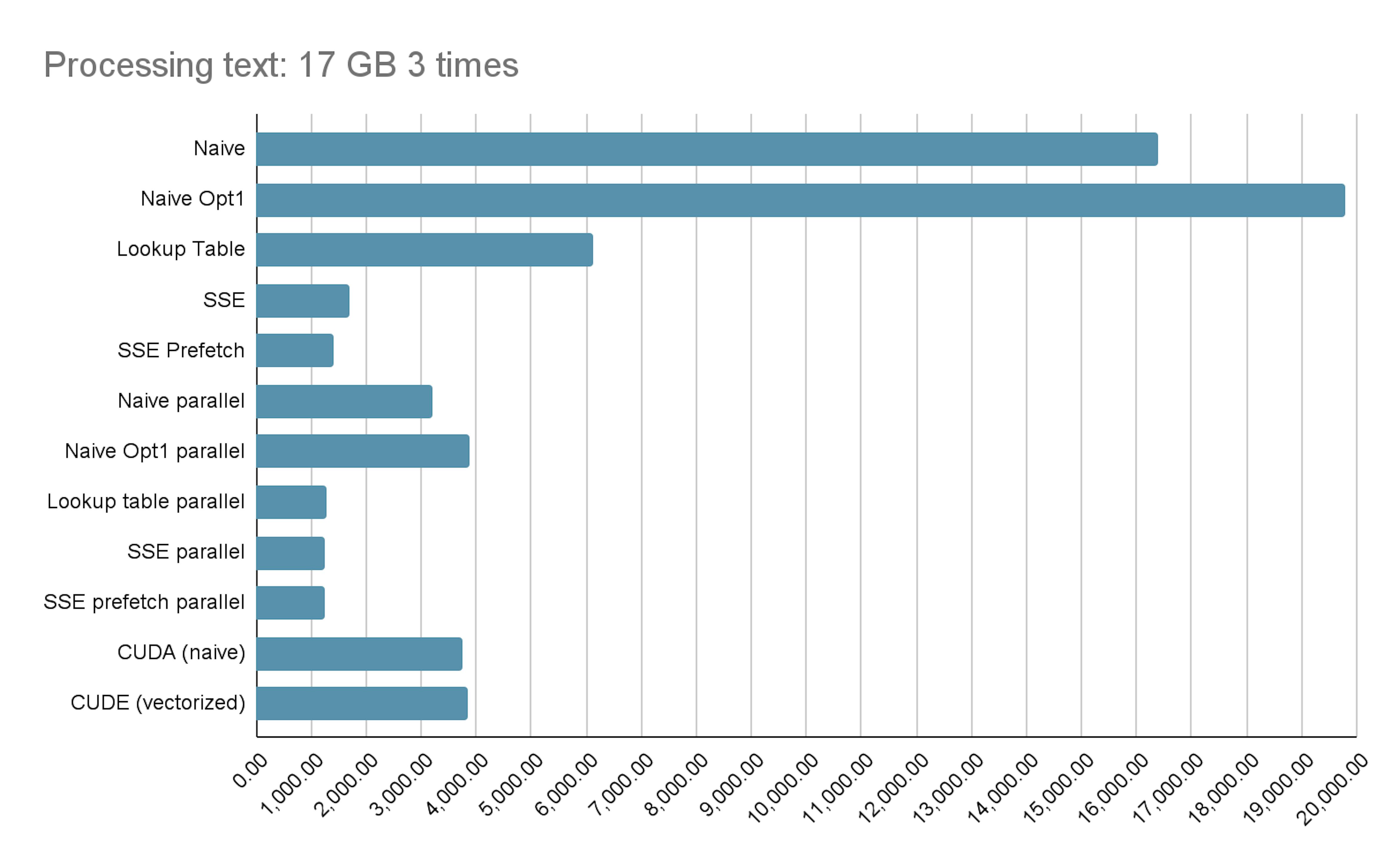 Here is a chart with all benchmark results. The champion for now is parallel SSE. If you have an AVX512 instruction, send me profiling results. Source code is available here.