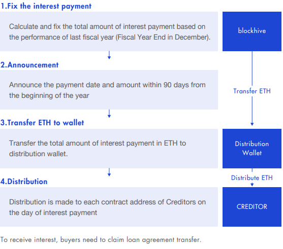 As yearly interest, Creditors will receive 20% of profits generated by the blockhive community using the platform.