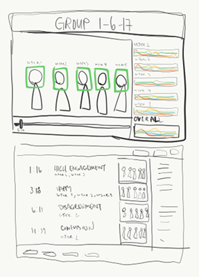 Second: Take the recorded footage and drop it into some non-existent, but feasible, software that analyzes each audience member’s face and body over time. The software could designate each person a score for their emotional state and level of engagement. Based on the scoring, timelines of scores could be generated for each person and the audience as a whole.