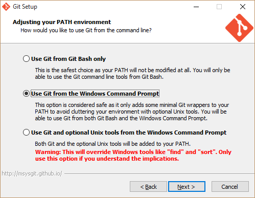 As a windows user, it’s reasonable to use git from window’s command prompt.