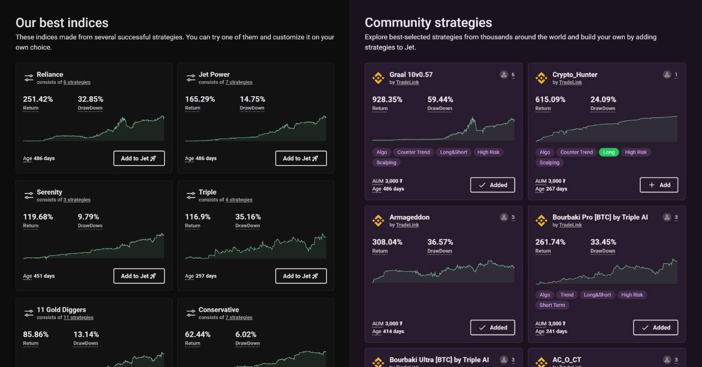 We have big plans for TradeLink. One of our planned features includes the development of active indices management. Like active portfolio management in traditional finance, managing indices involves adjusting strategy allocations to optimize gains.
