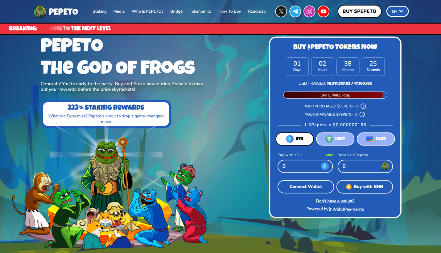 The Pepeto presale is live. To participate, use the official website, https://pepeto.io . As listing nears, some unauthorized platforms may try to misuse the Pepeto name. Verify sources before you act.