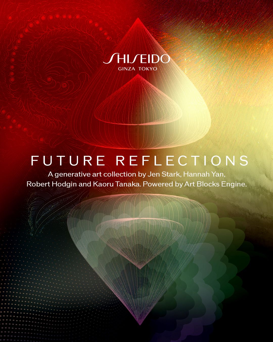 "Future Reflections" comprises 1,872 unique generative artworks, reflecting the brand’s founding year.The collection is a reimagination of the convergence of science, technology, and beauty, providing unique value to collectors. Brought to life by esteemed artists, including Hannah Yan, Jen Stark, Kaoru Tanaka, and Robert Hodgin, each artist brings a unique perspective and style, utilizing the Art Blocks Engine to create artworks that resonate with Shiseido's ethos. Their collective work is a vibrant testament to the synergy between artistic vision and technological innovation. Yan's intricate patterns, Stark's bold color palettes, Tanaka's subtle elegance, and Hodgin's dynamic interpretations all converge to reflect the diverse and rich tapestry of Shiseido's heritage. This collaboration not only highlights the artists' individual talents but also exemplifies Shiseido's commitment to fostering artistic creativity in harmony with its legacy in beauty and skincare.
