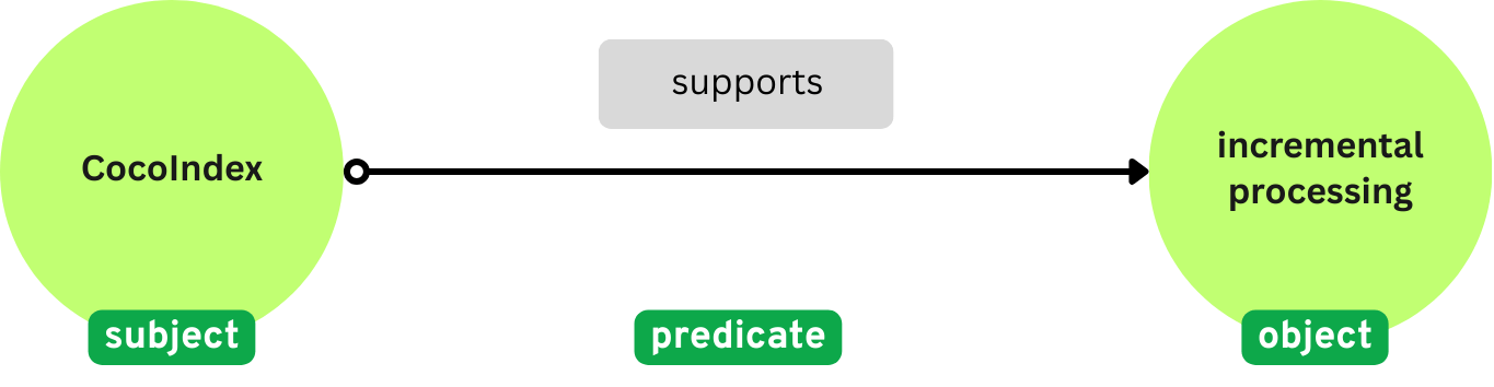 - Relationships between subjects and objects. E.g., "CocoIndex supports Incremental Processing"