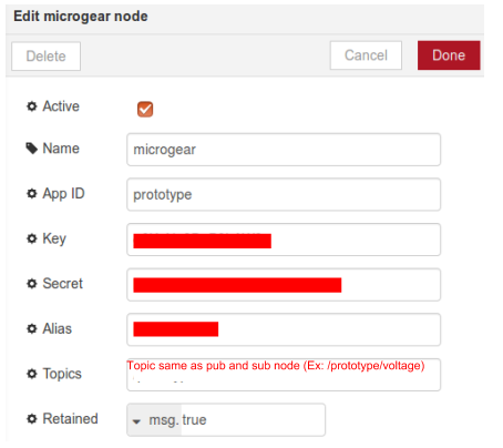 Create Application Id on NETPIE that is subscribed to same topic as publisher node.