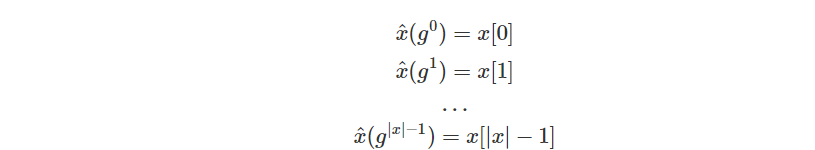 - Define a polynomial ^x(X) ∈ F^{<|H_{[<=|x|]}|}[X] for x, satisfying
