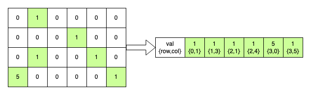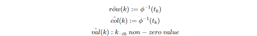 Where t_k is the row index of the kth non-zero value of the matrix,