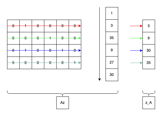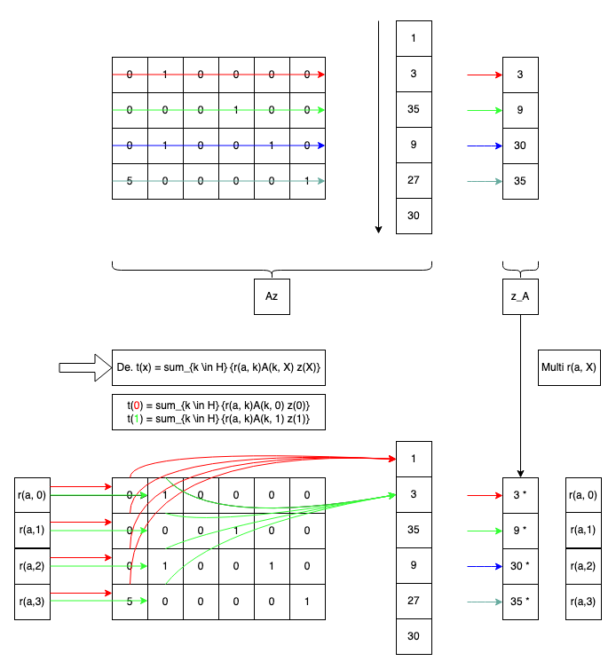 In order to reduce the computational complexity for the verifier (seepaper 5.2.1 ), we use a special form to represent the matrix. Below is an example using matrix A.