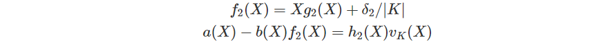 which can be combined as: a(X) − b(X)(Xg_3(X) + δ3/|K|) = h_3(X)v_K(X)