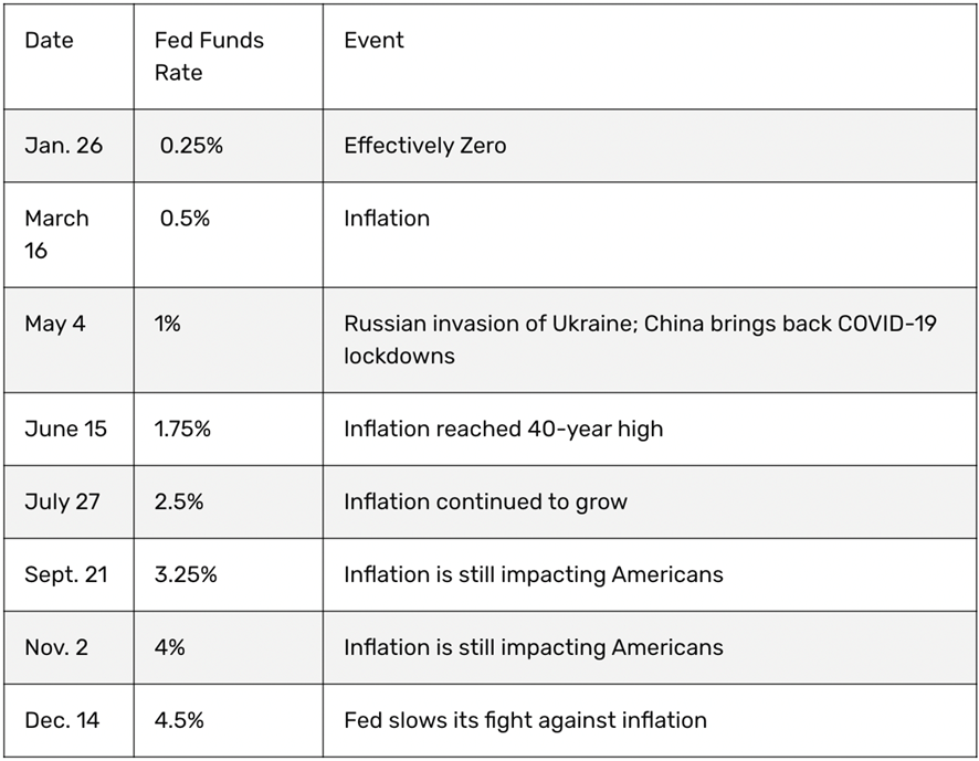 Target Federal Funds Rates for 2022, Source: thebalancemoney