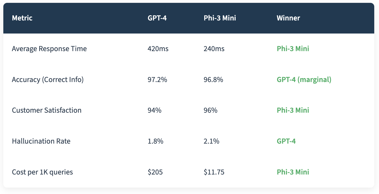 I know what you're thinking. "Sure, but what about quality?" That was my first concern too. So I ran a proper A/B test over two weeks with 5,000 real customer interactions split between GPT-4 and Phi-3 Mini (a 3.8B parameter model).