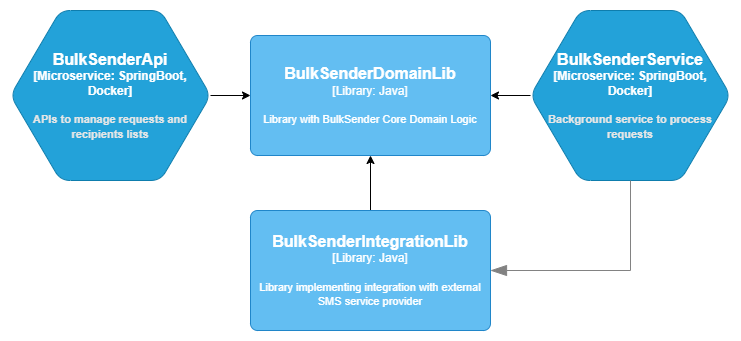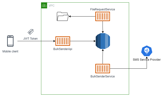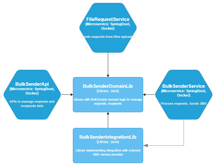 A new component FileRequestService is added that will read files and create requests from them. This was possible because core domain logic to manage requests, recipients, etc. was implemented in BulkSenderDomainLib so it can be re-used easily from any part of the system.
