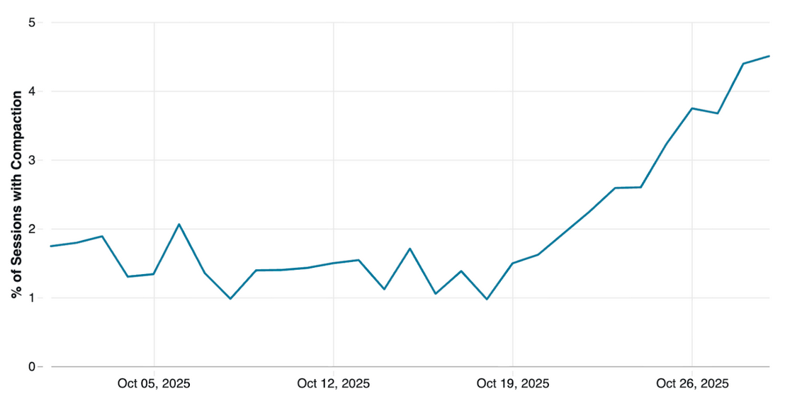 OpenAI’s engineers traced part of the problem to the very mechanism meant to keep conversations continuous. The report included a chart showing how the share of Codex sessions involving compaction more than doubled through October.