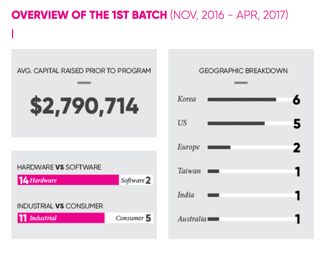 I believe this was recently reflected in the response to our 1st IoT & Smart City batch. Many companies that applied to this startup accelerator program already had more than $1M in revenues or raised over $2M in venture capital. The majority of companies that applied and the 16 companies in our 1st batch did not need our $50,000 investment, but I assume they saw the value that we previously added to our portfolio companies or heard about it. The first SparkLabs IoT & Smart City 1st batch had an average of $2.8 million raised prior to joining our program, which was mind-blowing to some of our team members.