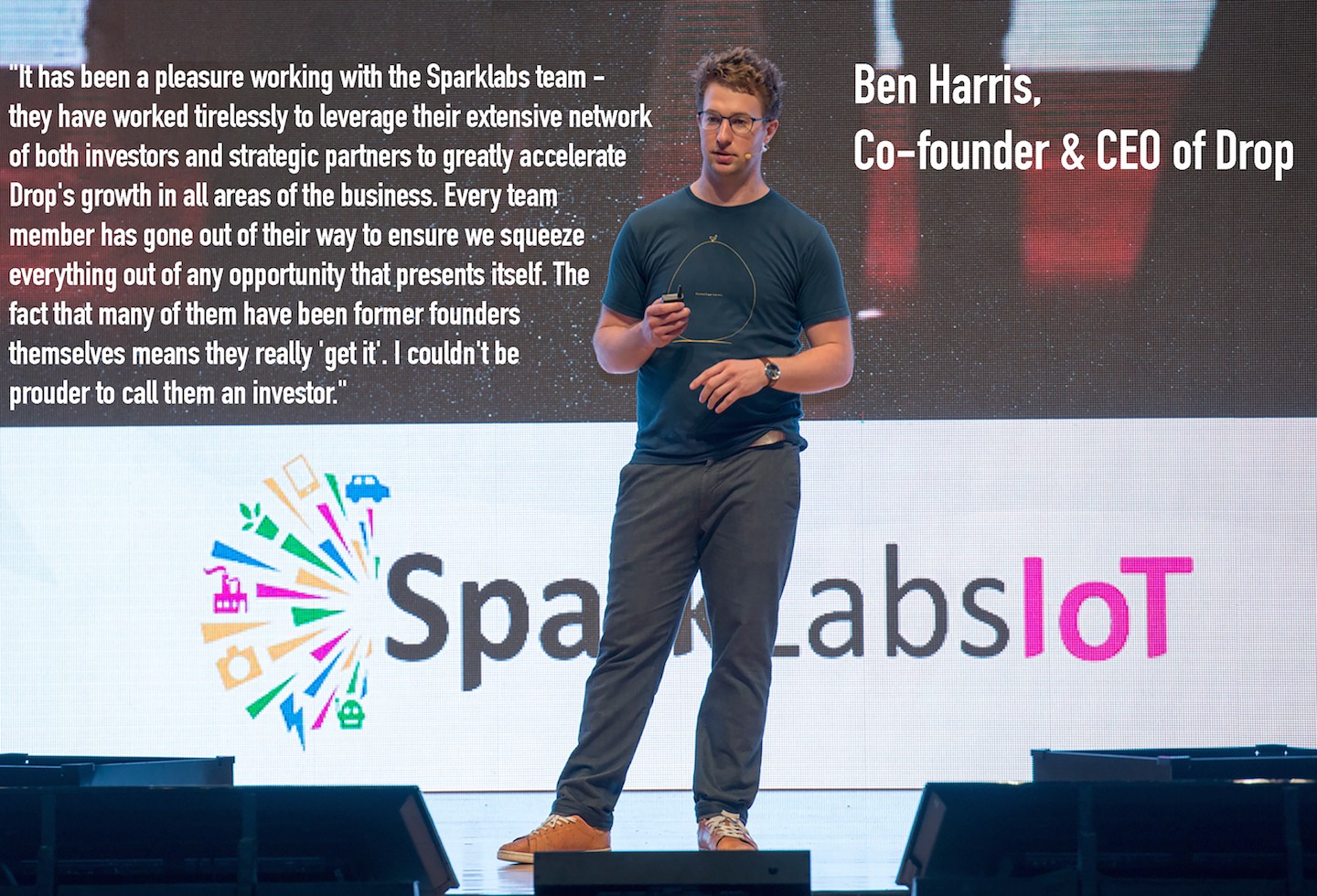 Ben Harris, Co-founder & CEO of Drop, presenting at SparkLabs IoT Demo Day 1