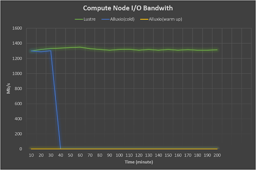 We found that the I/O traffic of the Alluxio warm cache node is reduced from 1300Mb/s to basically zero compared to the direct reading from the underlying distributed storage. This is a huge benefit to our platform. This is the most efficient and relatively cost-effective way to reduce the network traffic of the storage system without scaling the underlying storage hardware.