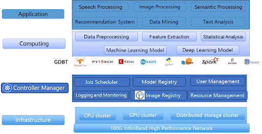 Based on the Kubernetes open source architecture, the Unisound team has developed the core features and successfully built an AI supercomputing platform with a floating-point processing capacity of more than 10 PFLOPS (100 million times per second). The platform supports the main machine learning frameworks, and developers can efficiently research and develop core applications such as voice, NLP, big data, multimodal, etc. The platform also serves external customers such as SMBs and research institutions with customized computing and storage capabilities.