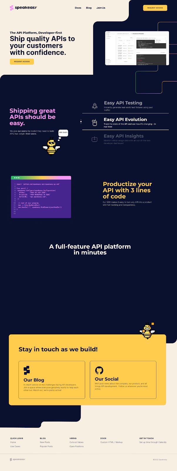 We’re building the developer-first API platform; we make it easy for developers to ship quality APIs to their customers with confidence. For developers, confidence in tooling comes from transparency and reliability. No snake oil, black boxes, or downtime. Our platform is honest with our users and consistent in its execution.