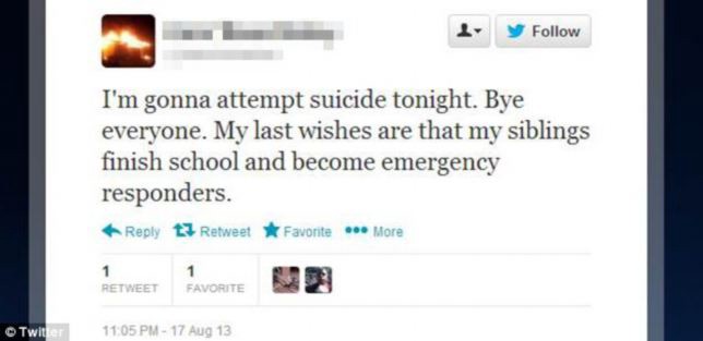 - Psychological support was not offered to those Twitter users who appeared to be at-risk as intervention via Twitter as it may not be appropriate. This is due to several reasons: suicide risk fluctuates; uninvited contact with participants is an invasion of privacy; such contact could lead to unsolicited attention; and most importantly, the main aim of this study was to determine whether it was possible to categorise tweets in this way, rather than to immediately assume the coding was accurate.