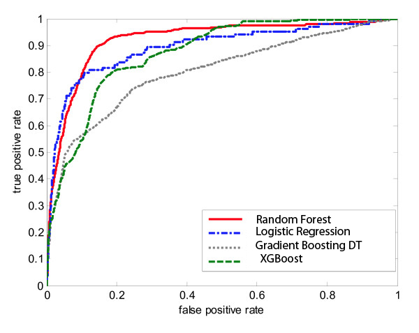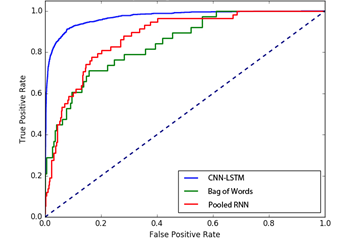 ROC and AUC analysis was conducted given the imbalance in the dataset and measuring the sensitivity and specificity. Random Forests and CNN-LSTMs supersede performance as in terms of accuracy. Surprisingly GBDT performs poorly.