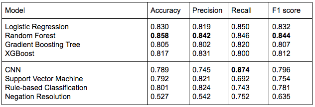 RF wins due to ability to reduce variance which is very important in suicidal tweets given their diverse nature. CNN-LSTM is a close second. Work supersedes current state of the arts on the same dataset. Greater validation may be needed as we incorporate more data, which our model aims to do.