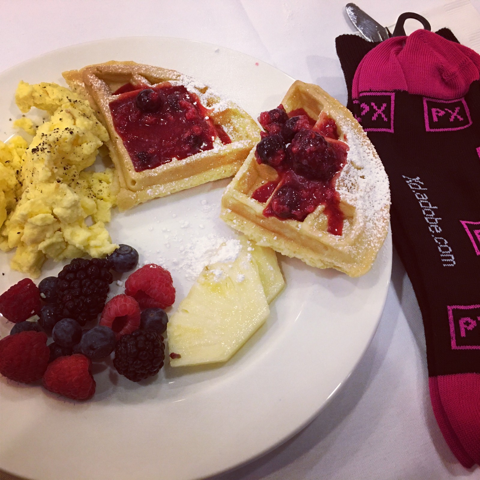 The Adobe Xd team gave a quick demo on using Xd for wireframing and design and I must admit I was pretty impressed with what it could do. The irony of it all was as I sat eating my waffles, holding on to my Xd socks, on my feet I was wearing Sketch socks.