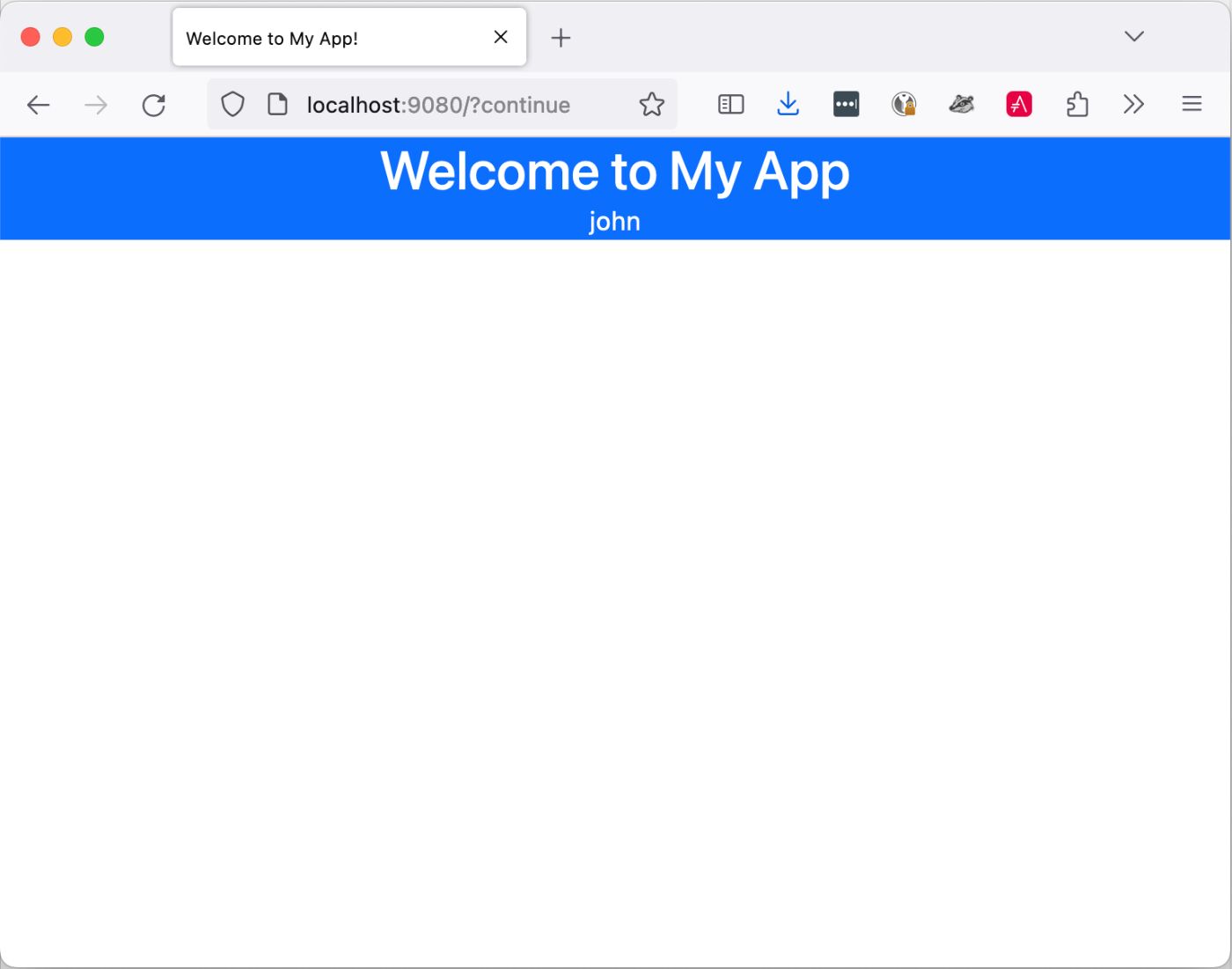 If we log in successfully, we are allowed to access the app. Notice that we display the username of the person who logged in: