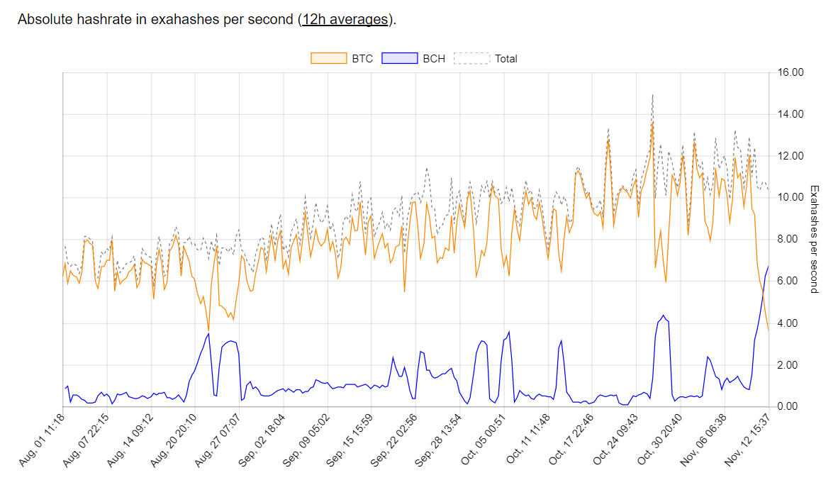 According to Fork.lol, the total hashrate backing the bitcoin cash blockchain surpassed that of the bitcoin blockchain on Sunday, November 12th.