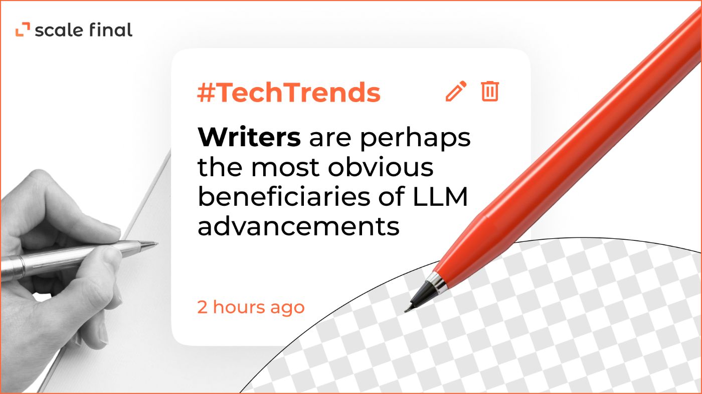 d. Writers are perhaps the most obvious beneficiaries of LLM advancements. LLMs not only help with proofreading and finding references, but also with developing ideas, structuring articles, and ensuring that the tone and style of a text are consistent.