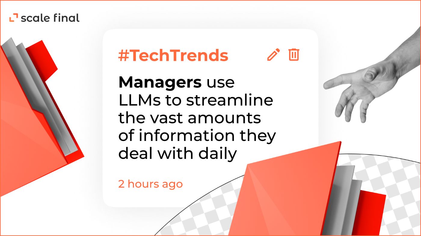How Scale Final tackles this: Our management teams use LLMs for a wide array of things: from auto-generated reports and formatting documents according to company standards to even email composition.