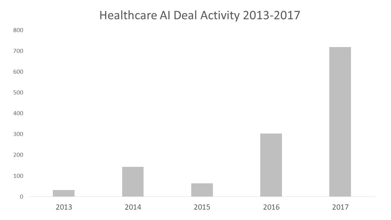 Healthcare AI/ML funding skyrocketed to over $700 million in 2017 with 126% growth year-over-year. The most demanded innovations are automation solutions, computer vision, population health, etc.