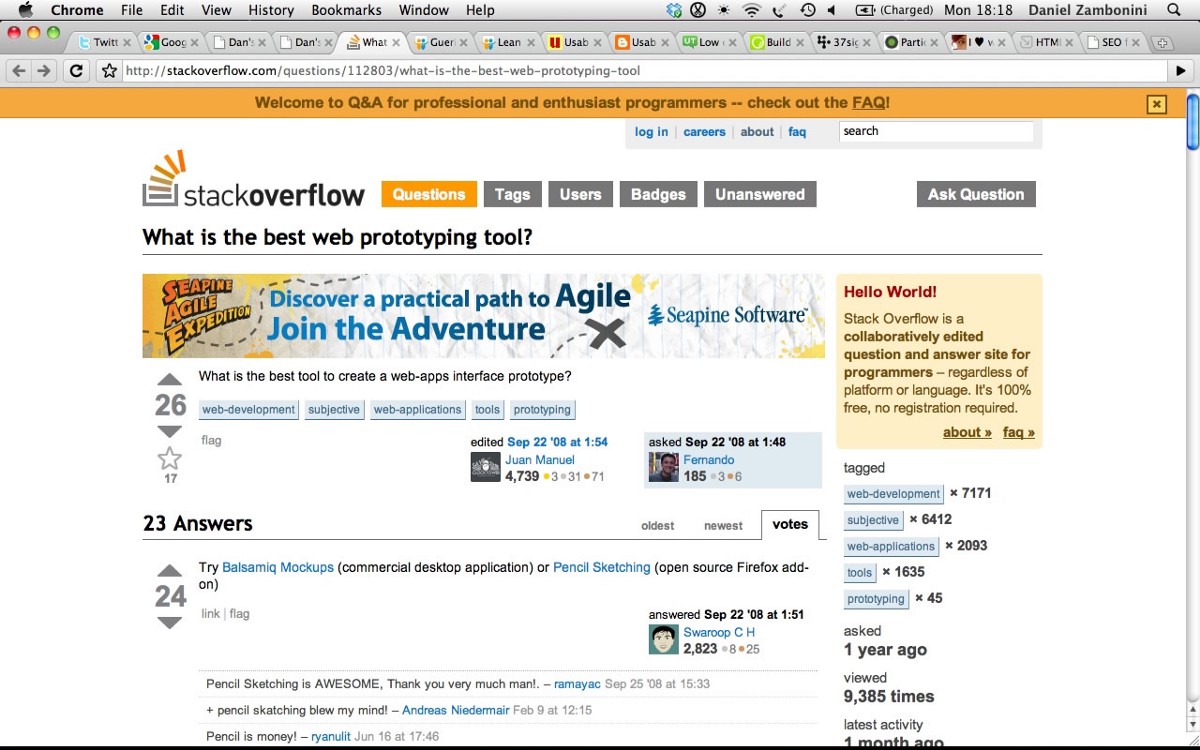 In 2009, I began tackling more and more ambitious projects and, just in time, Google results began taking me, more and more, to a new forum: StackOverflow. In retrospect, it was the incredible attention that Jeff and Joel dedicated to creating an answer-driven, focused, developer-friendly user experience that made the site great — but all I remember from the time is telling people how cool it was that StackOverflow would almost always have an immediate, working solution to my problem.