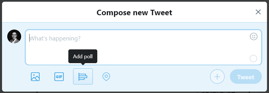 The Compose new Tweet box after you select the Add Poll option.