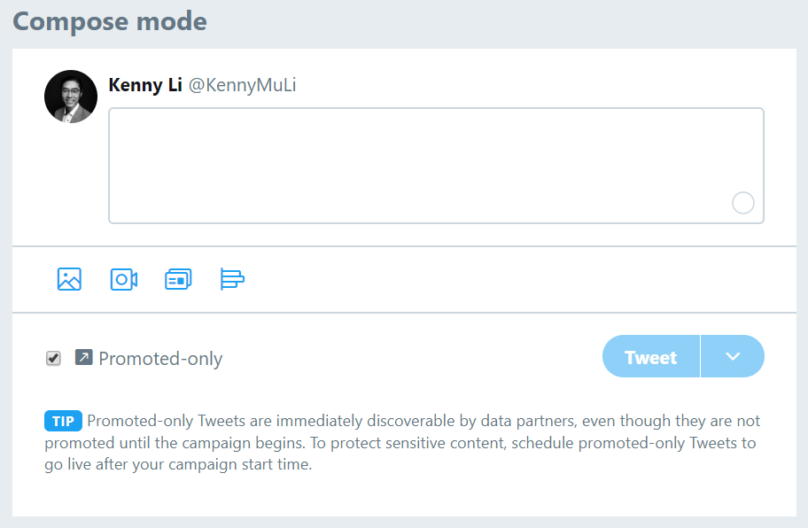 If you’ve used Twitter Ads before, you know that you can also create a Tweet within the Creatives page, which means you can create a Tweet Poll in there, too. If you decide to do that, be sure to uncheck the Promoted-only box at the bottom.