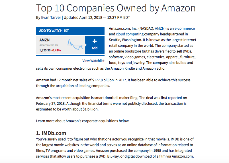 Source: https://www.investopedia.com/articles/markets/102115/top-10-companies-owned-amazon.asp