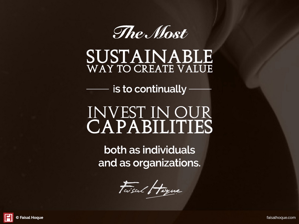 And that allows us to arrange our lives and our organizations in a way that leads to long-term value creation. Indeed, the most sustainable way to create value is to continually invest in our capabilities, both as individuals and as organizations.