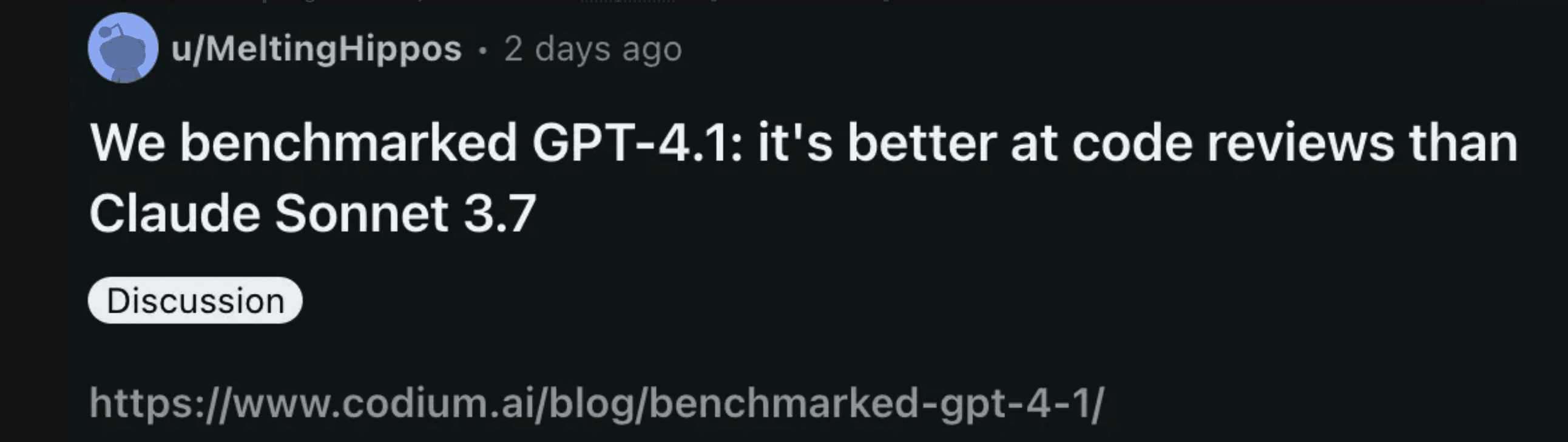 “The benchmarks are so whack, how does [GPT-4.1] score so high on SWE bench (20% higher almost) and fall behind DeepSeek on [Aider Benchmark]? - Reddit user.