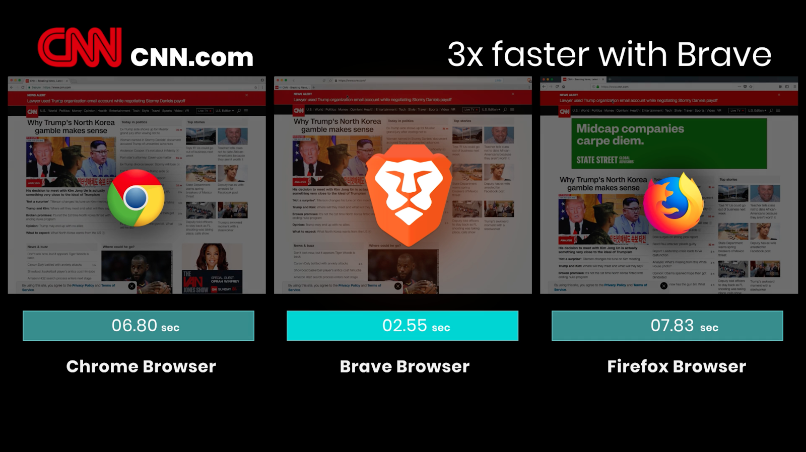 Users of Brave will instantly see massive speed and safety improvements, especially on mobile. Web pages viewed through Brave are two times faster on desktop and up to eight (!) times faster on mobile.