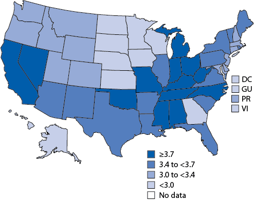 Mean number of mentally unhealthy days during past 30 days among adults aged ≥18 years