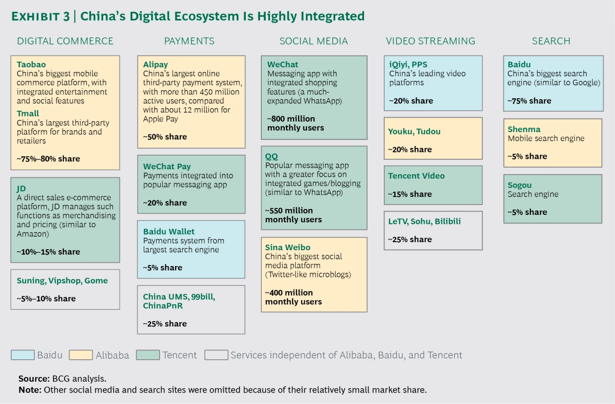 These companies don’t operate in strict silos; they’ve all expanded into most of the technology sub-sectors. See the below graphic from The Boston Consulting Group: