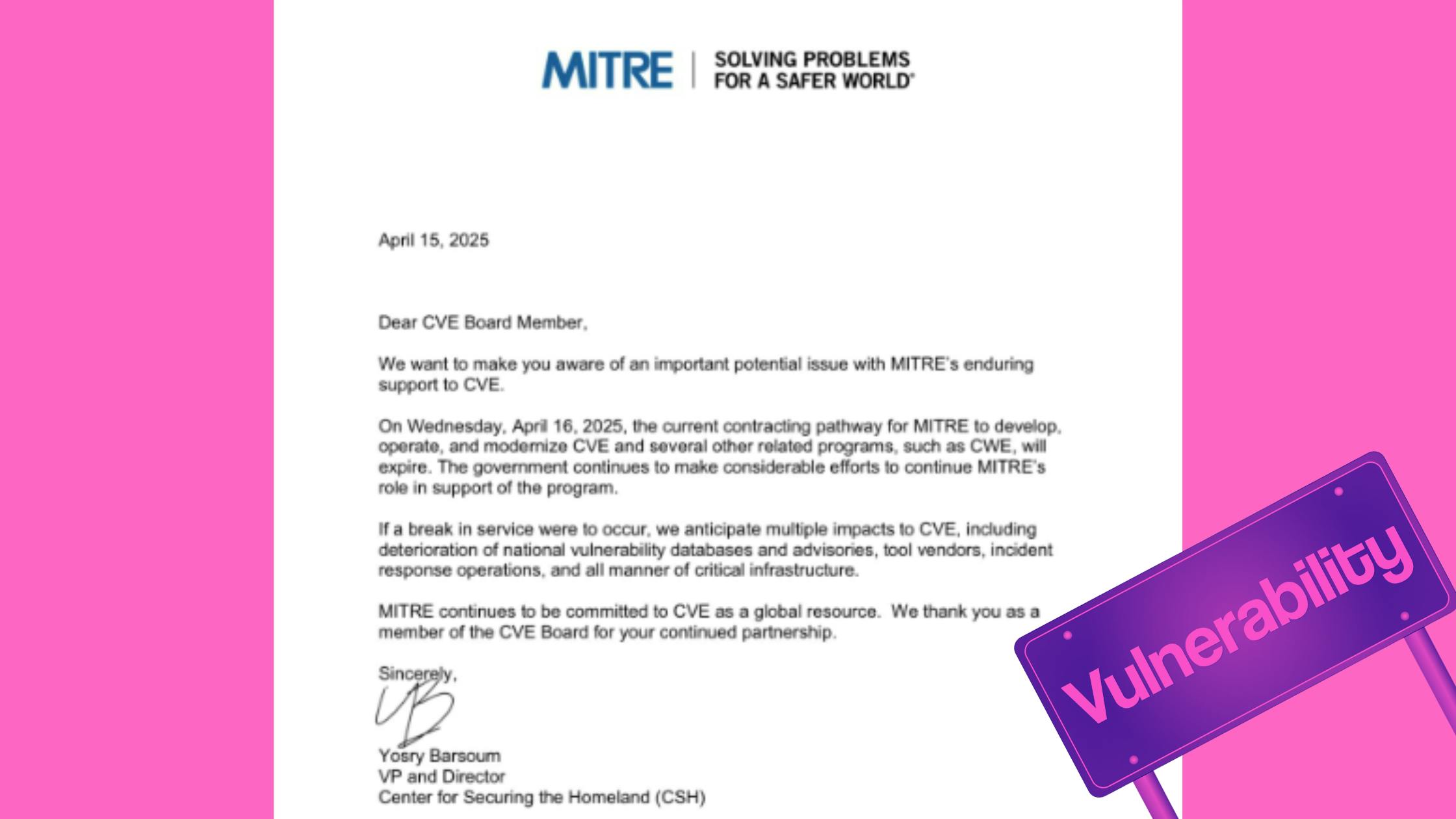 As of April 16, 2025, the Common Vulnerabilities and Exposures (CVE) program — the global standard for identifying and tracking