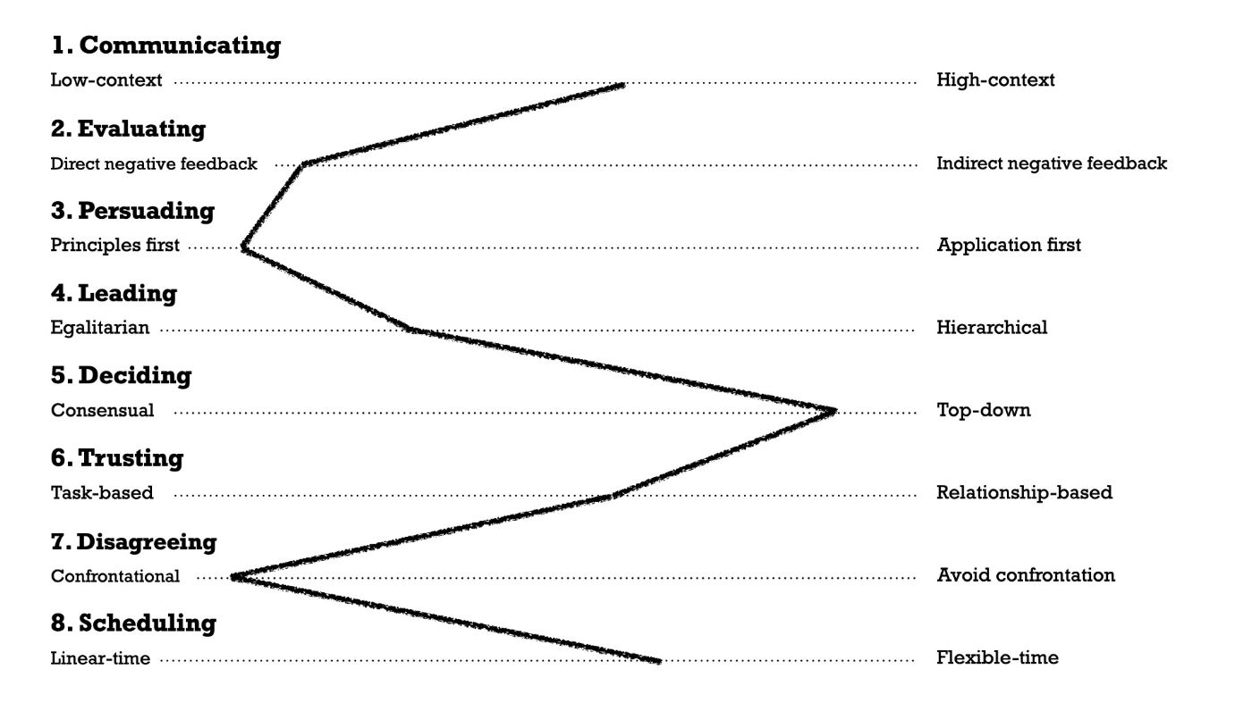 Erin outlines the core skills people use in their work and offers a scale for each one, with countries on it. I think it's not as important to find your country on the scale as it is to find your personal place on it. Several times, I discovered that my country is at the opposite end of the scale compared to me. I think this is because the company I worked for for a long time was quite progressive and used many of the practices of the tech industry, where cultural differences are smoothed out.
