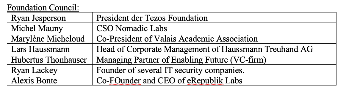 The Tezos Foundation has — like so many other Blockchain foundations — its headquarters in Zug (CH). The history of the Foundation and the relationship with the Tezos founding couple Arthur and Kathleen Breitman was for a time marked by fierce disputes. Under Swiss law, the Foundation and its Board Members must be independent of each other.