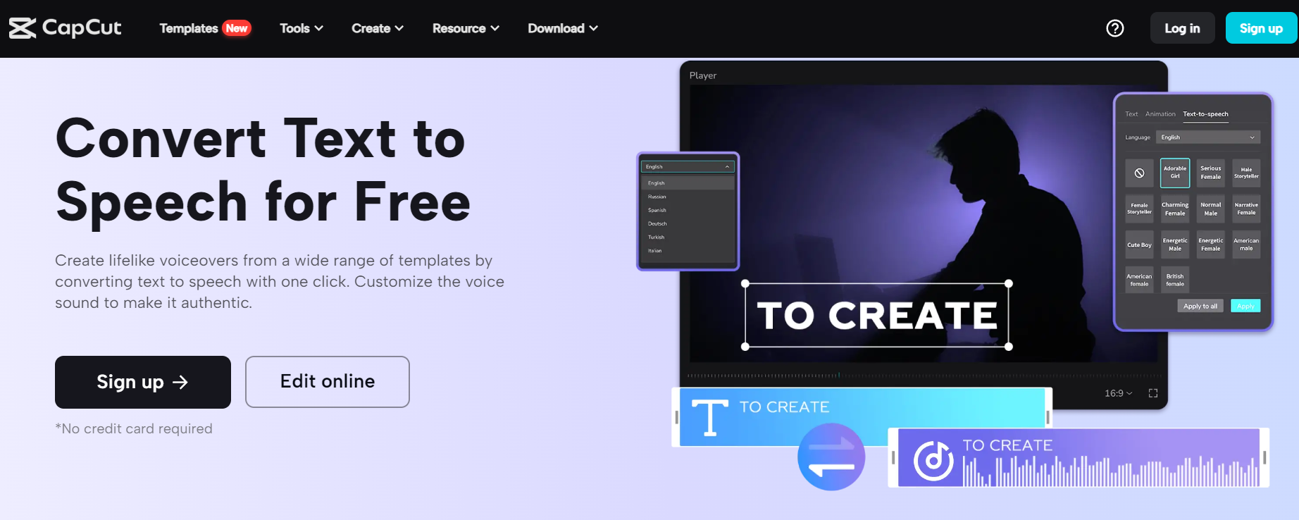 CapCut - a free online video and image editing software developed by the creators of TikTok – can create lifelike voices with ease, allowing users to select from a variety of templates and create voiceovers in many different languages, including English, Korean, Turkish, Spanish, Russian, German, Arabic, and more!