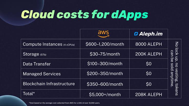 The operating cost of a decentralized cloud service like Aleph Supercloud and any business built on it is definitely lower than the operating cost of centralized cloud services. This is due to lower cost of running the blockchain system.