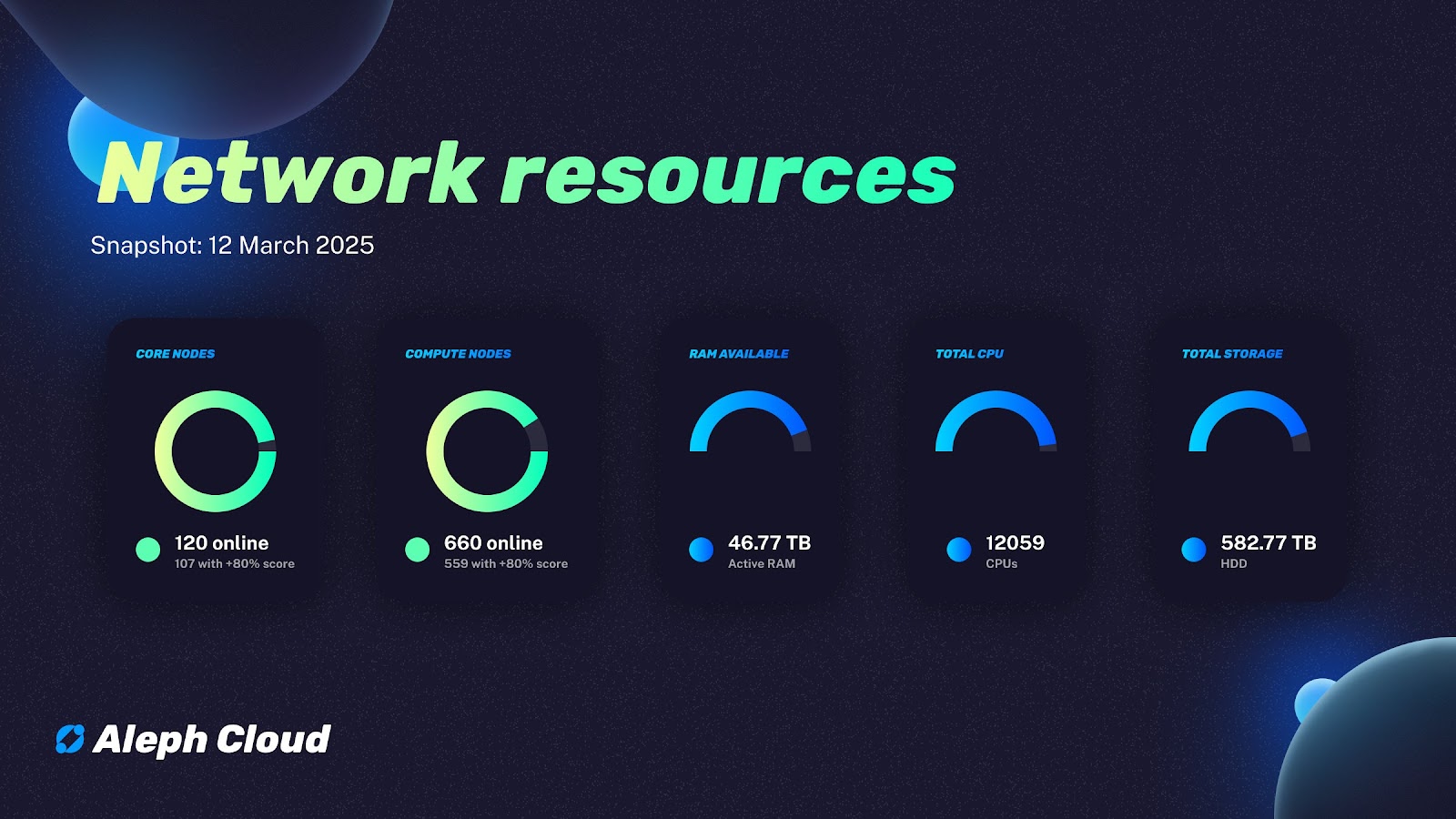 Aleph Cloud is a Web3 Supercloud providing infrastructure for decentralized storage, compute, and AI. Built on hundreds of globally distributed nodes, it powers scalable and resilient applications for Web3, DeFi, AI, and gaming industries. Developers rely on Aleph Cloud’s marketplace for high-performance resources across networks like Ethereum (and its L2), Solana, BNB Chain, and Avalanche.