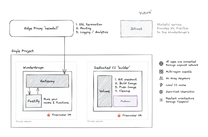 Together, Heimdall, Bifrost, the WunderGraph Gateway, and the Application Server form the WunderGraph Cloud Platform.