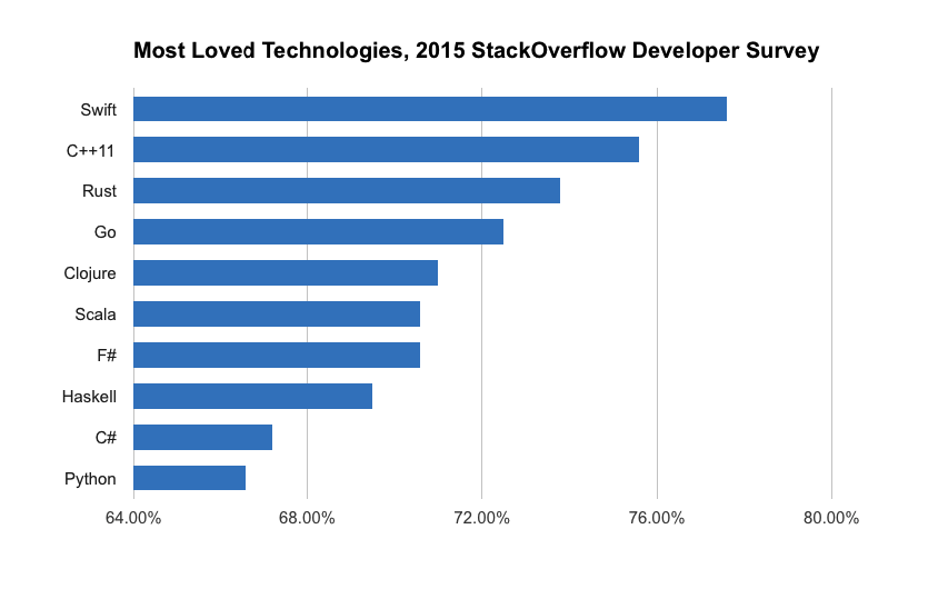 This, however, didn’t prevent Swift from becoming the “most loved” technology, according to the 2015 StackOverflow Developer Survey.